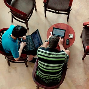 We have a WI-FI system which provides hook-up to the Internet from anywhere in the hotel lobby;